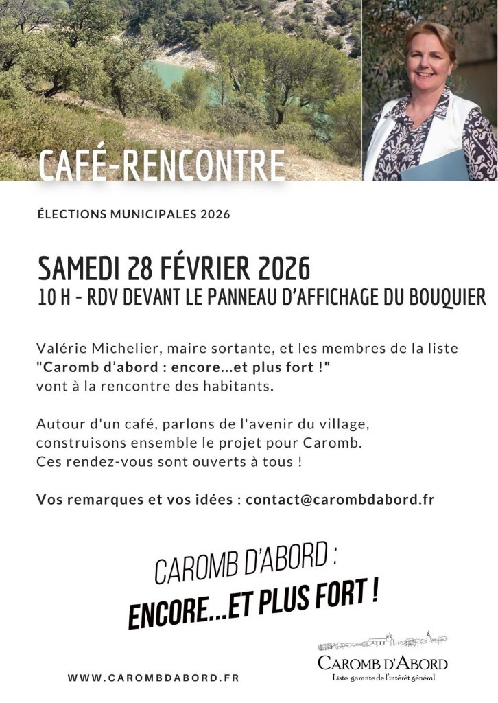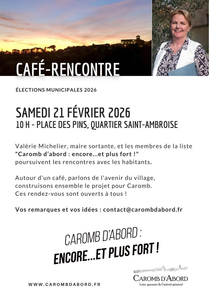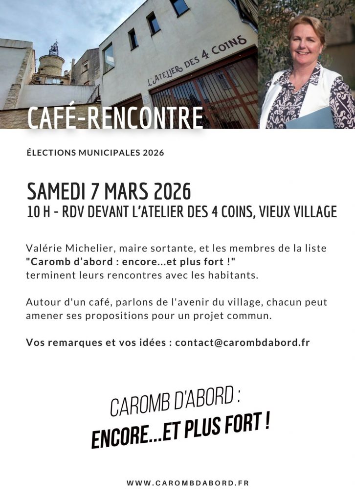 Les cafés-rencontres se poursuivent avec les candidats de la liste « Caromb d’abord : encore…et plus fort ». L’occasion d’évoquer ensemble l’avenir du village et d’enrichir le programme de l’équipe.